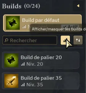 Ces builds de paliers peuvent être masqués si nécessaire en utilisant le bouton associé. Ils NE PEUVENT PAS être supprimés et il n’est pas possible d’en changer les niveaux mais il est possible de modifier leur contenu.