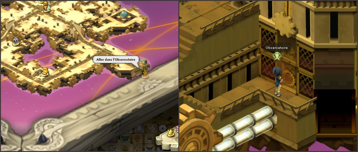Si vous êtes en multi-compte, la progression de la quête suite à ces deux combats peut buguer pour l’un des deux comptes. Si possible, rendez-vous dans l’observatoire et faites le combat avec un compte puis répétez avec le second compte. Si l’un des deux comptes bug, retournez à l’observatoire pour relancer les cinématiques et les combats.
